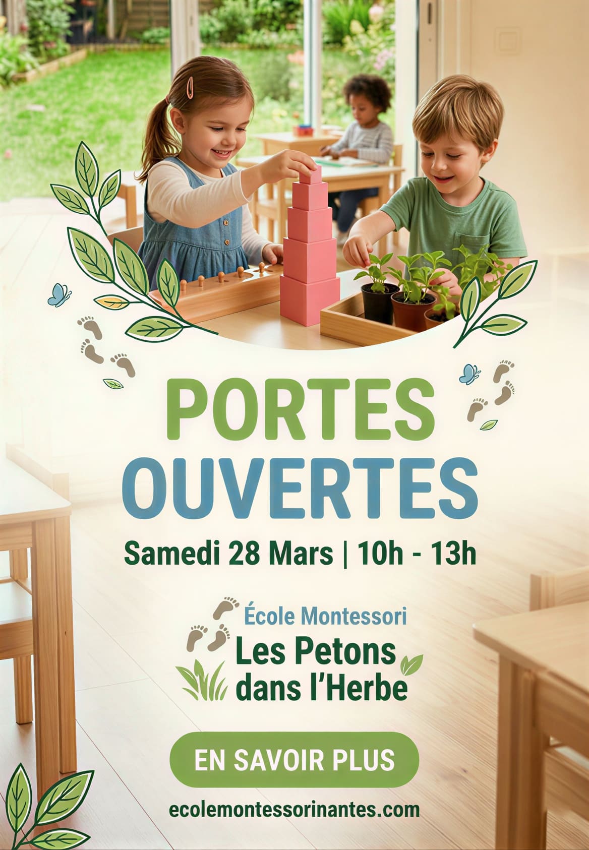 L’école les Petons dans l’Herbe a ouvert ses portes en 2018 dans le nord de Nantes (proche des facultés). Elle est composée de 2 « maisons des enfants » (ambiances 3-6 ans), d’une ambiance 6-12 ans, et est complétée d’une micro-crèche (0-3 ans).